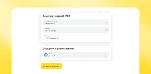Проверьте данные, выберите счет для зачисления пенсии и отправьте заявление.
